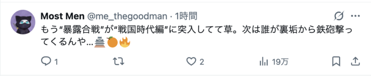 - 「裏垢からの暴露、情報量多すぎて大河ドラマ外伝みたい」