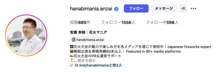 安斎さんは1981年、福島県二本松市に生まれ、現在は千葉県船橋市に在住する花火マニアです。彼は単なる花火愛好家ではなく、全国140か所以上の花火大会を巡り歩き、花火文化の魅力を世に伝える専門家として知られています。東日本大震災で実家が被災し、落ち込んでいたときに見上げた故郷の花火が、彼の人生を変えました。以来、「花火をもっと多くの人に楽しんでほしい」という想いで活動をスタート。花火大会の撮影・解説・講座運営から、メディア出演・広報PR支援まで、多彩な分野で活躍しています。