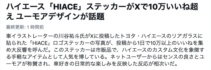 車イラストレーター・川谷祐斗(@YutoKawatani)さんが投稿したトヨタ・ハイエースの“謎ステッカー”写真が、わずか1日で10万いいねを突破し、SNSを席巻しています。