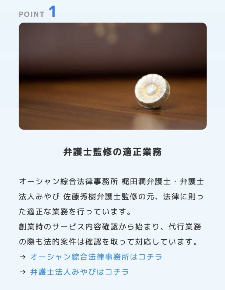 民間で唯一、高等裁判所からも「弁護士法には違反しない」とお墨付きをもらっています。