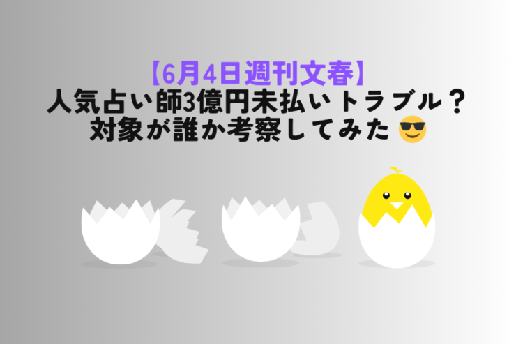 - 週刊文春が6月4日公開の電子版で、「人気占い師の3億円未払いトラブル」を報道予定。